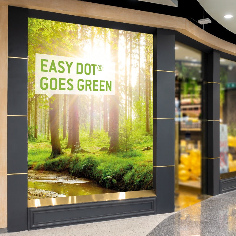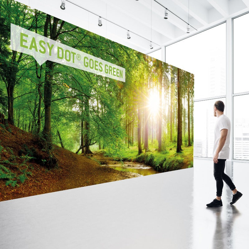 Neschen Easy Dot PET L-UV Matt is the PVC-free solution for sustainable advertising. With its homogeneous matte surface, this innovative film delivers photorealistic print quality while reducing your carbon footprint. Thanks to the patented dot adhesive, it applies bubble-free, can be repositioned, and removes cleanly without residue. Perfect for indoor use on flat surfaces such as glass, metal, and panels.