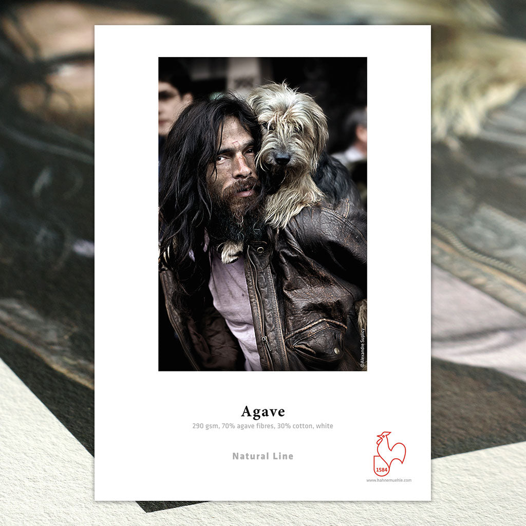 Hahnemühle Agave augments the Natural Line with a FineArt inkjet paper that is produced using agave fibres. 70% of this unique, environmentally friendly FineArt inkjet paper is made from sisal fibres. The base material stands out with its bright white natural tone and does not contain optical brighteners. The rough, yet delicately defined surface texture gives the subject a captivating sense of depth and impresses with a pleasant, soft feel.