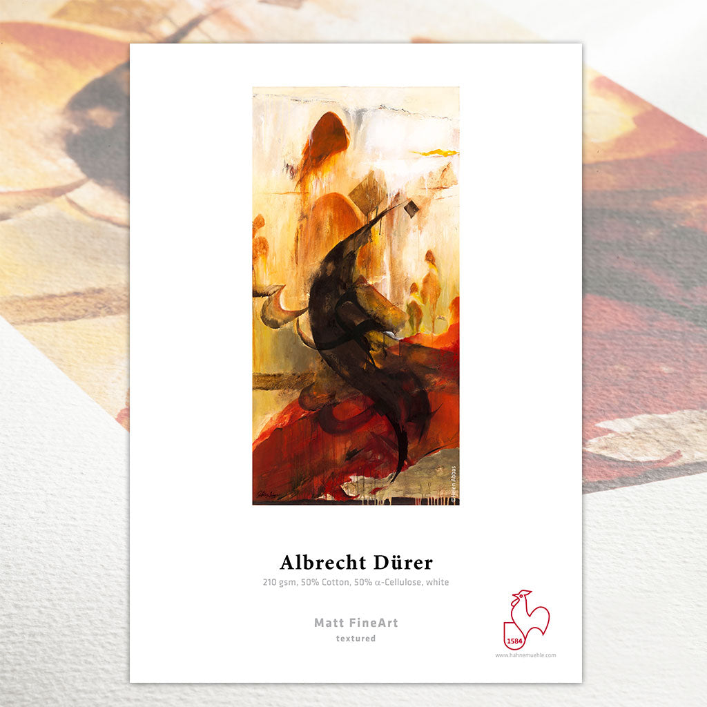 Hahnemühle Albrecht Dürer 210 is a mould-made fine art inkjet paper with a watercolour texture. Its lightly structured surface gives prints a painterly feel, making it well-suited for expressive artworks, reproductions, and artistic photography.
