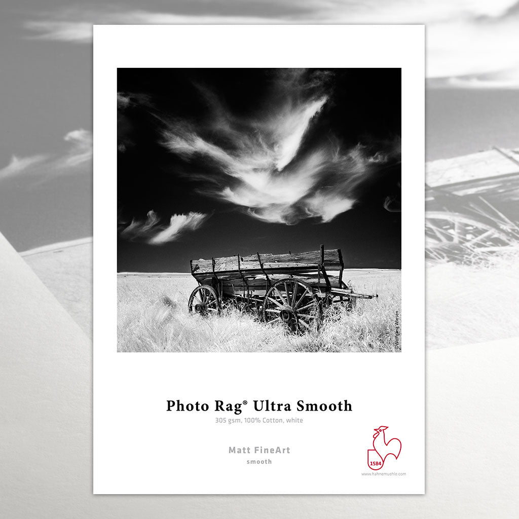 Hahnemühle Photo Rag Ultra Smooth 305 is a premium 100% cotton paper with an exceptionally smooth matte surface. It has a natural white tone, outstanding colour density, and high sharpness, making it ideal for detailed fine art reproductions and high-end photographic prints.