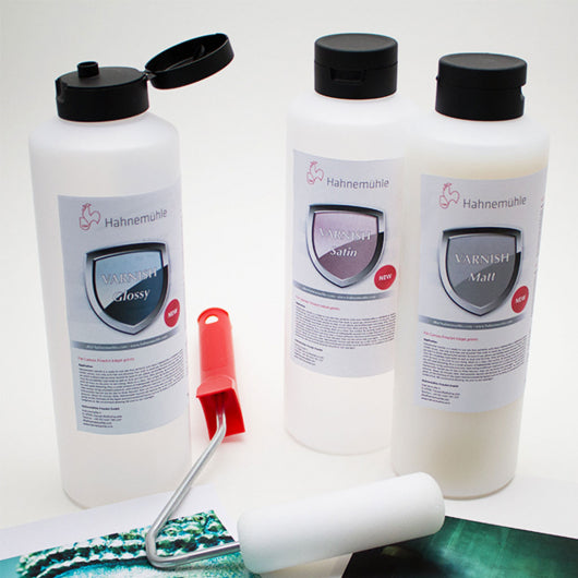 Hahnemühle Varnish is a protective coating for canvas and fine art prints. Available in gloss, satin, and matte finishes, it enhances colours, shields prints from UV damage and improves resistance against scuffing and handling.