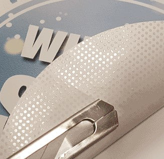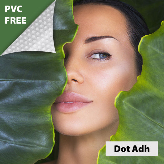 A smooth 90 micron polypropylene (PP) matt white self-adhesive film with an innovative permanent dot shaped adhesive allowing a bubble-free application, even by inexperienced users, and residue-free removal. Designed for short term applications for use with UV-curable inks, UV-gel, and screen printing.
